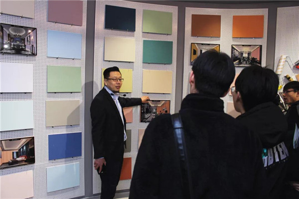 參觀完總部后,在解說員的帶領下,河北環(huán)境工程學院一行人來到了我公司品牌體驗展示中心。對于我司相關環(huán)保產(chǎn)品大家都還比較陌生,常凱??偂⒗钣聞羁偡謩e對室內(nèi)污染物治理展廳、企業(yè)綠色裝飾材料展廳進行了細致介紹,讓大家對凈化原理及環(huán)保材料等有了一個全新的認識!